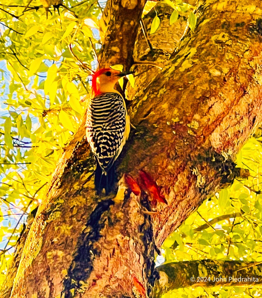 On a walk around our beautiful neighborhood and capturing the little miracles of life. A charming little red-bellied woodpecker, embodying the inherent elegance of nature.